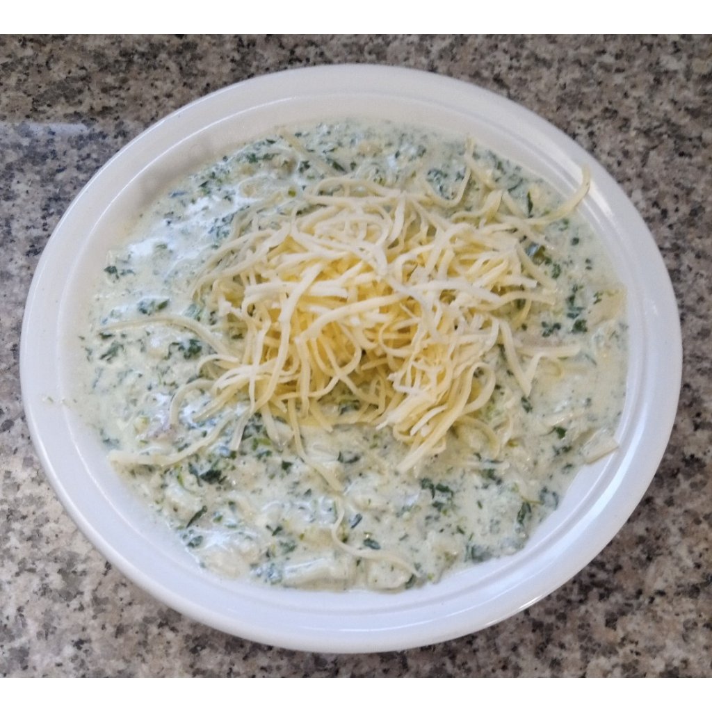 Těstoviny s kuřecím masem, špenátem, česnekem a smetanou