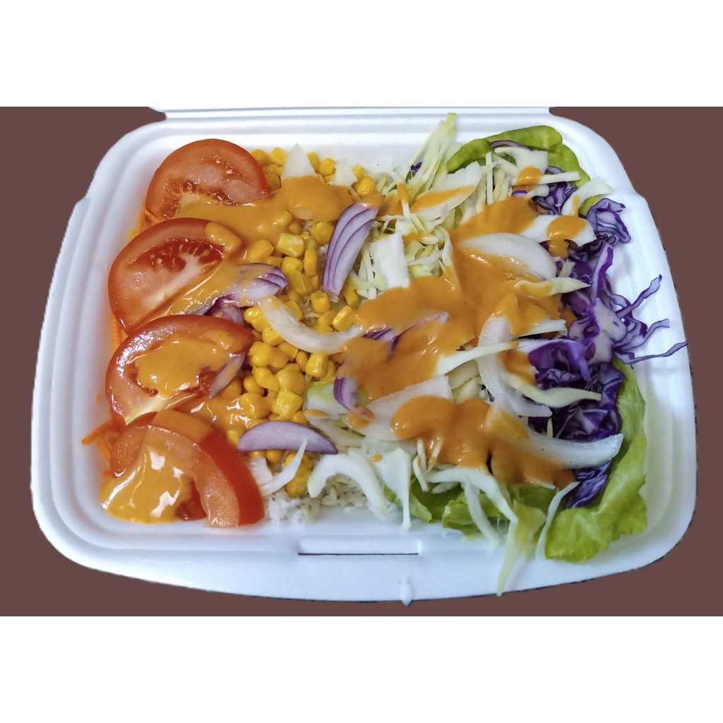 Ledovka, mrkev, rajčata, okurky, bílé zelí, červené zelí, kukuřice, cibule, dresink